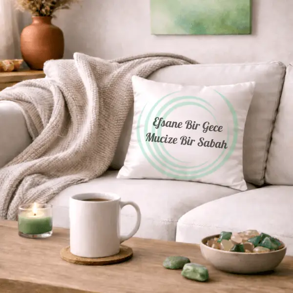 Özel Tasarım Yastık: Dinlenme anlarınıza duygusal denge frekansı katar.